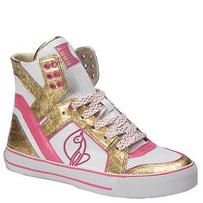 The coolest standout-styled sneaker yet Perforated leather upper Canvas lining Cushioned insole Vulcanized rubber sole with pink stripe Reptile trim and metallic accents Baby Phat logo detailing Embroidered kitty at side