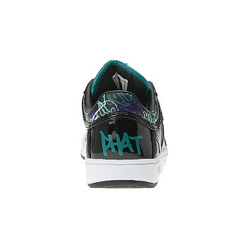 Make a mark on your wardrobe with the Tag Cat Low sneaker by Baby Phat. Genuine leather upper in a casual skate inspired sneaker style with rounded toe. Padded collar and tongue feature graffiti-like markings to kick up style. Patent leather Baby Phat Logo appliqu on side with signature rhinestone accent. Fabric and faux leather lining and cushioning insole, classic vulcanized midsole and rubber outsole with extra grip.