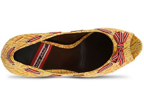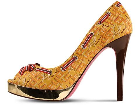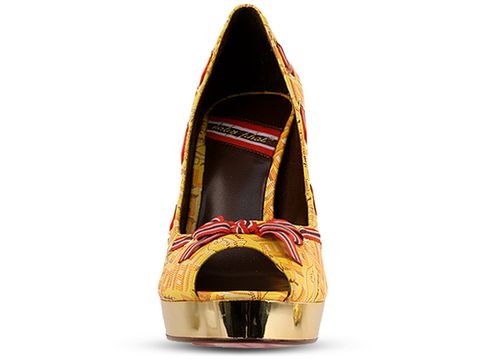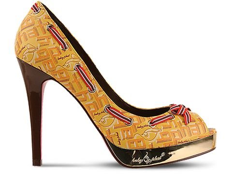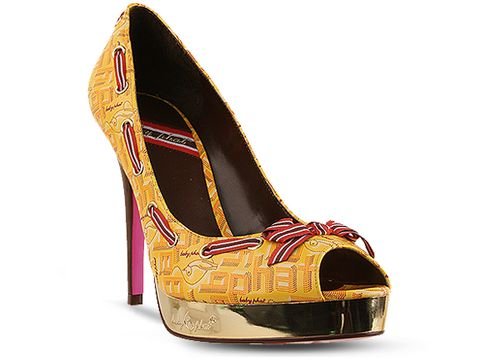 Bold statements come in modest packages, indisputably shown in the Baby Phat Belinda. A bright upper subtly bears a retro Baby Phat logo print, contrasted with lace weaving in and out of grommets around the shoe's border. Let your pedi shine with a small peep toe, while the shoe struts its own stuff with the glinting of a mirrorlike metallic platform and a glossy patent stiletto heel. If this still isn't enough fabulosity for you, a sexy colored sole makes onlookers turn for a second look. Padded footbed. Synthetic upper. Nonskid outsole. 4 1/2" heel, 3/4" platform.